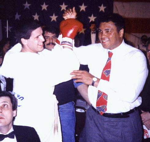 One of Peter's greatest heroes as an aspiring boxer was Muhammad Ali, and Peter has met The Greatest on several occassions.   The Ali-McNeeley family connection actually goes back over thirty years.   After hanging up the gloves on his own ring career in the 1960's, Peter's father Tom became the boxing commissioner of Massachusetts.   In that capacity he was the first to grant the former Cassius Clay a license to fight in his state, a fact that Ali has never forgotten. |
